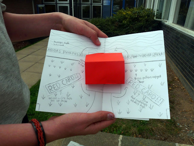 4. Throughout the project everything went reasonably well. I combined photoshop and hands on work together to get the final product. We had problems with the printer throughout, but these were easily resolved with acrylic. My pop up pie went particularly well and the whole pop-up book works fine.